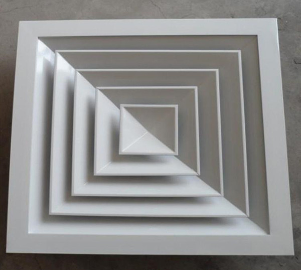 方形散流器先調(diào)挺直,表面光潔,葉片角度為固定式,葉片采用夾角片沖壓連接,整個(gè)葉片與邊框采用分離式結(jié)構(gòu),以方便安裝與調(diào)節(jié)。設(shè)計(jì)時(shí)可根據(jù)房間造型不同,選用不同出風(fēng)方向的散流器,可與調(diào)節(jié)閥配套使用鋁合金表面經(jīng)陽(yáng)極氧化處理,也可根據(jù)用戶要求進(jìn)行靜電噴塑處理。